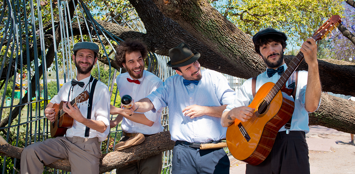 “Con su sonrisa comemos toda la semana”, repiten como principio inquebrantable de cuidar la calle como el escenario principal. La peatonal de la ciudad de Córdoba los vio nacer hace cuatro años, luego de que Andrés Lazzarof -el fundador- soñara que caminaba sobre adoquines y entraba en recovecos con luz a cantar mensajes de amor. Lo acompañaban tres personas y estaban vestidos como si fueran los años ’30. Ese mundo onírico se hizo realidad y hoy existen no una, sino dos bandas. La otra está en Uruguay, donde nació Lazzarof, y los miembros de ambos países van rotando de acuerdo a las necesidades. “Mientras que no quede un hueco, si hace falta un jugador, somos solidarios”, dice Rodrigo.