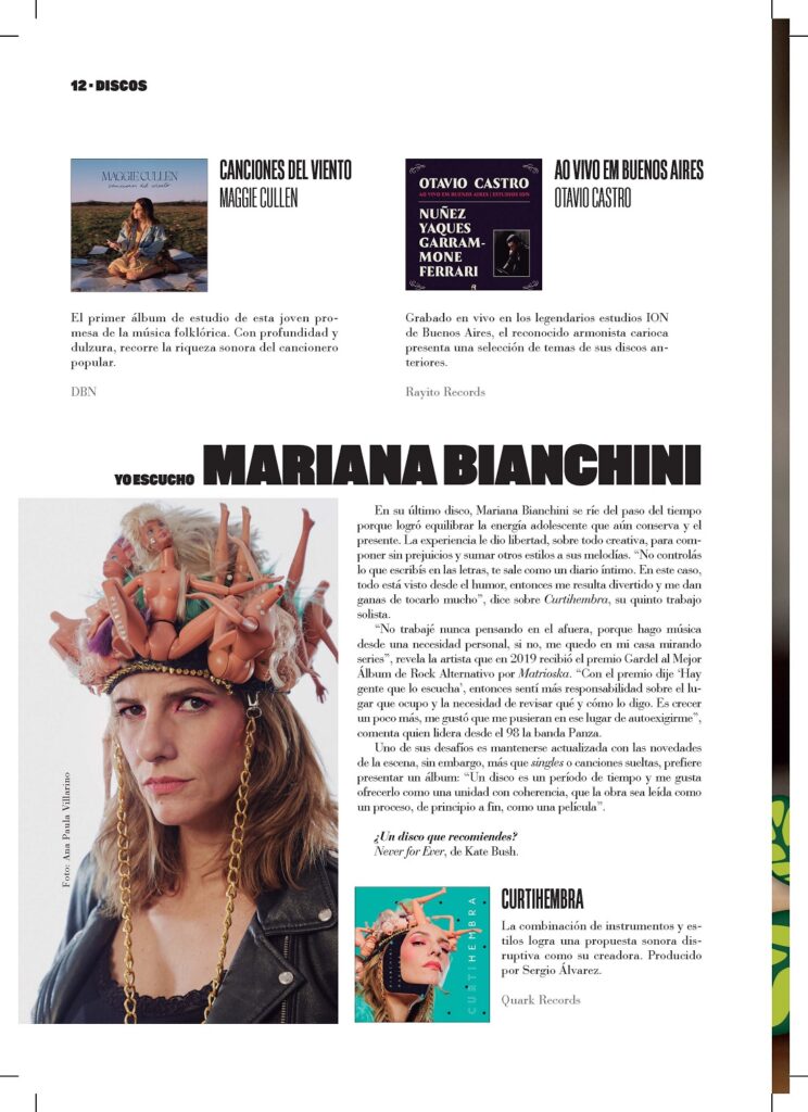 En su último disco, Mariana Bianchini se ríe del paso del tiempo porque logró equilibrar la energía adolescente que aún conserva y el presente. La experiencia le dio libertad, sobre todo creativa, para componer sin prejuicios y sumar otros estilos a sus melodías. “No controlás lo que escribís en las letras, te sale como un diario íntimo. En este caso, todo está visto desde el humor, entonces me resulta divertido y me dan ganas de tocarlo mucho”, dice sobre Curtihembra, su quinto trabajo solista.