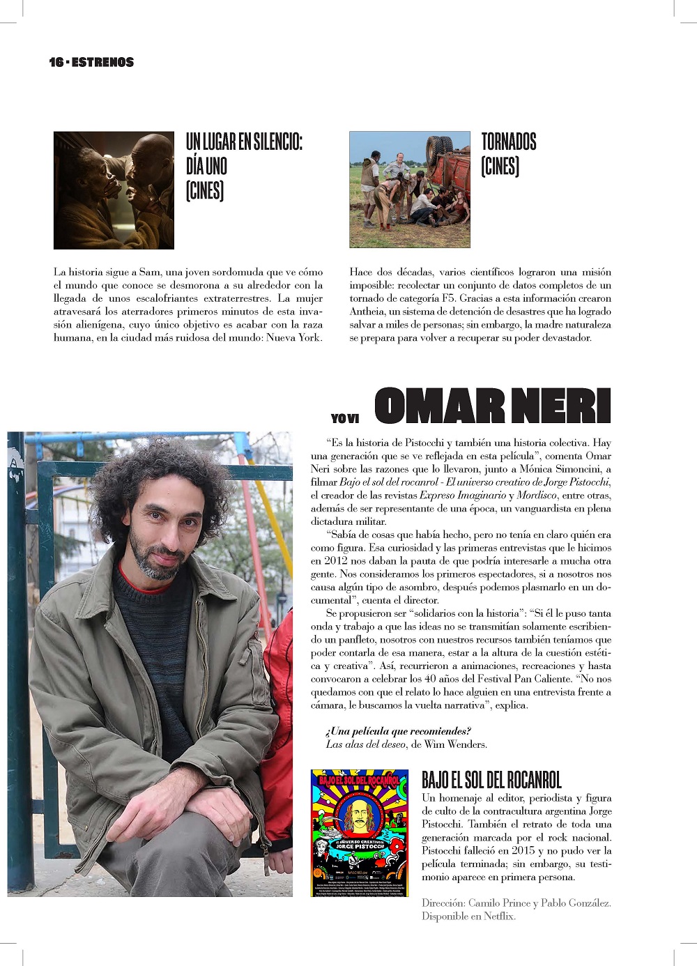 “Es la historia de Pistocchi y también una historia colectiva. Hay una generación que se ve reflejada en esta película”, comenta Omar Neri sobre las razones que lo llevaron, junto a Mónica Simoncini, a filmar Bajo el sol del rocanrol – El universo creativo de Jorge Pistocchi, el creador de las revistas Expreso Imaginario y Mordisco, entre otras, además de ser representante de una época, un vanguardista en plena dictadura militar.
